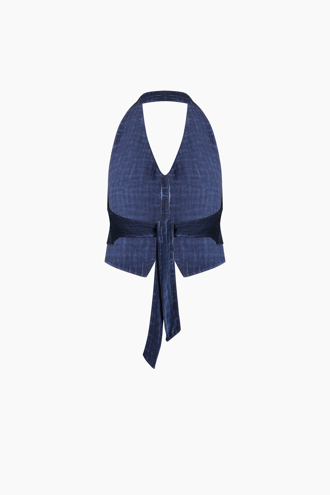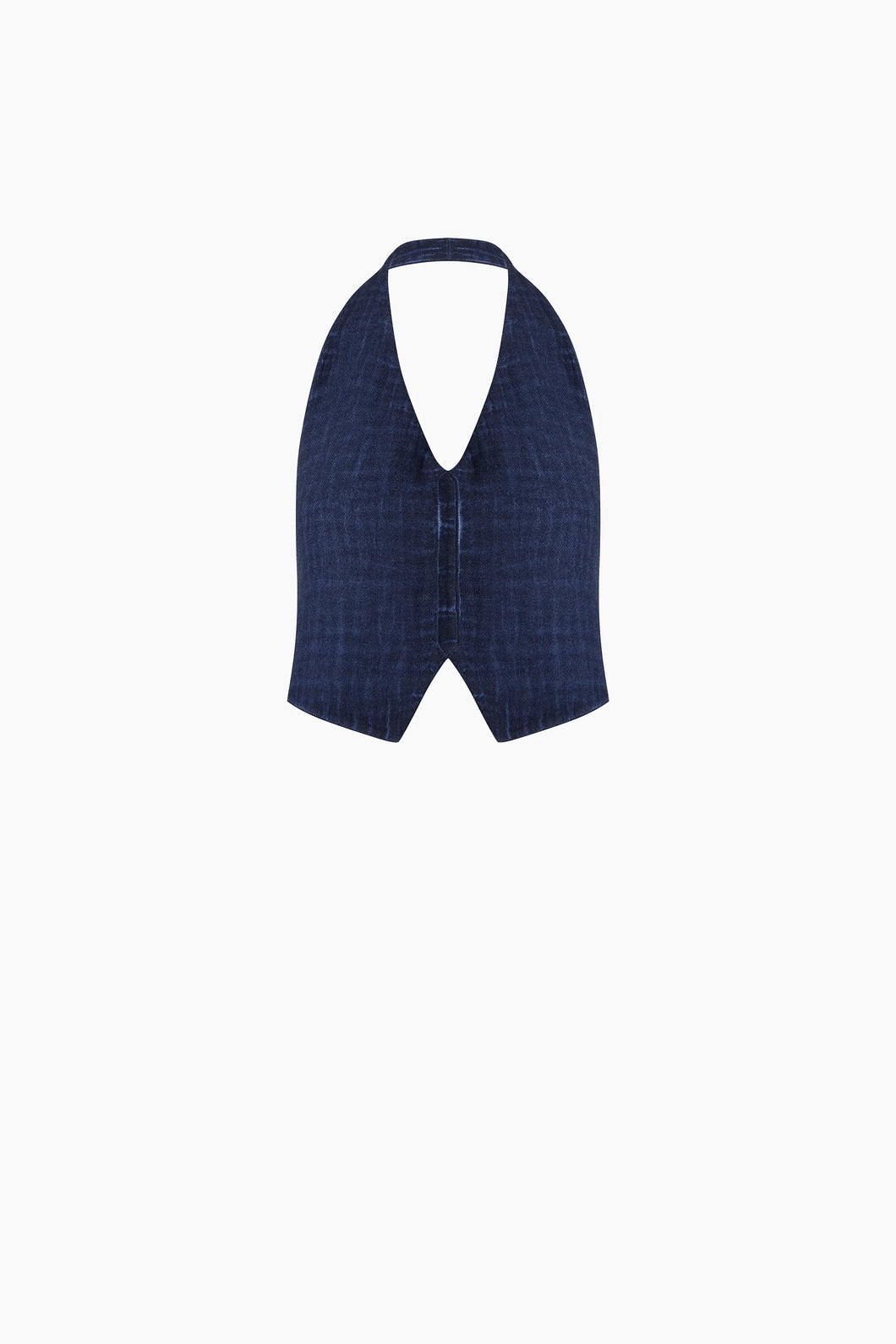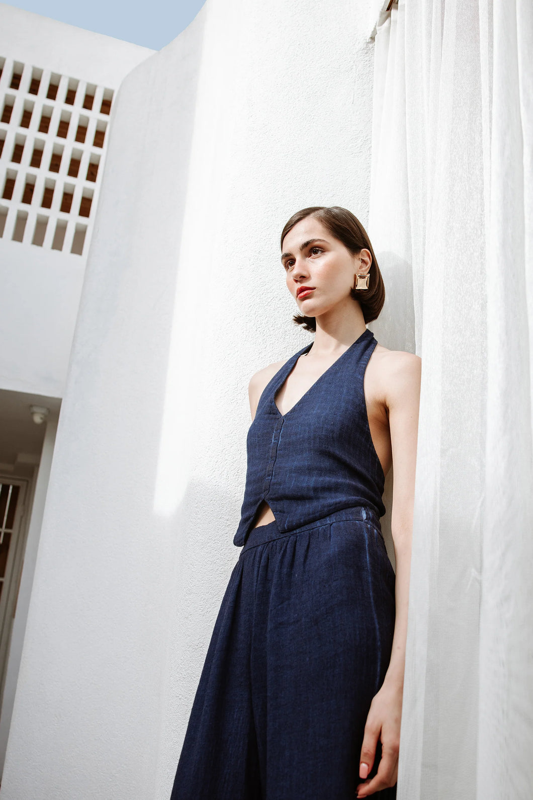Minimalist and easy wearing, elastic details for best fit. Navy Waistcoat has a flattering shape that creates a soft and easy appeal, making it a charming essential to summer wardrobe. It is a must-have for those who love to move during the day freely.